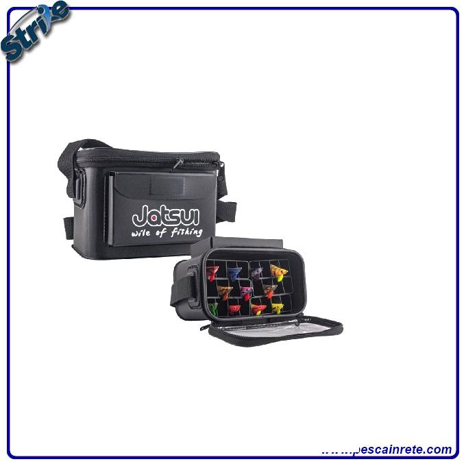 Jatsui Eging Eva Bag Borsa da pesca ideata per il facile trasporto di 24 totanare da egi. Borsa realizzata in Eva e dotata di scompartimenti estraibili. La borsa presenta una tracolla per il trasporto e fondo forato per agevolare il risciacquo degli artificiali ed evitare il ristagno di acqua all'interno. Coperchio Trasparente.