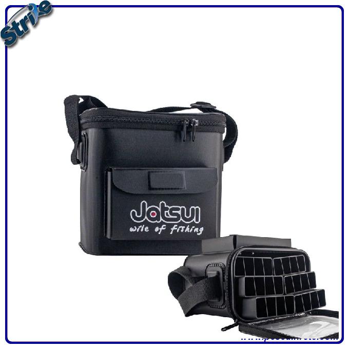 Jatsui Eva Bag Borsa da Pesca realizzata per il trasporto di 24 Artificiali (Max 21cm). Borsa costruita in Eva con coperchio trasparente e scompartimenti estraibili. Fondo forato per il facile risciacquo degli artifciali direttamente in acqua senza il ristagno di acqua all'interno. Borsa con ampia tasca frontale e tracolla con asola passacintura.